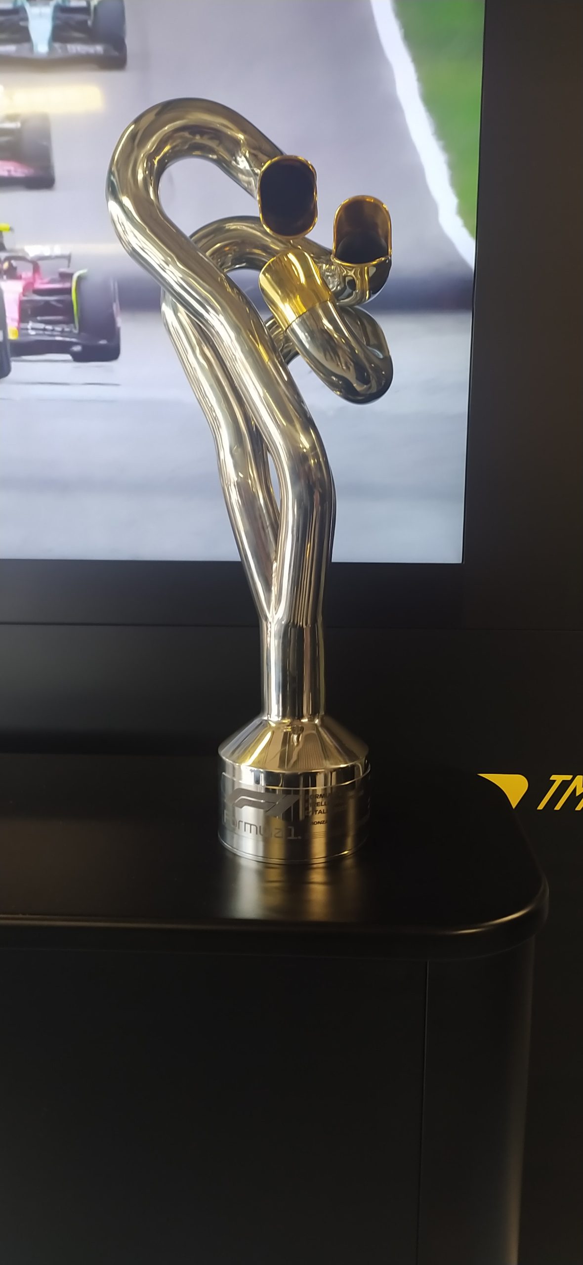 Na istom događaju bio je i Ferravijev Enrico Gualtieri, tehnički direktor pogonske jedinice. Upravo Ferrarijevi inženjeri u Maranellu su isklesali trofej od jedne “grane” ispušnog sustava s V8 bolida koji izgleda poput tajfuna, a sami završeci na otvoru predstavljaju otvorena usta zmije, što prema riječima autorice Ruth Berahe predstavlja moć i mističnost.