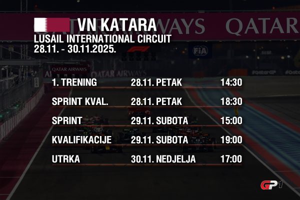 Vremenska razlika između Katara i Hrvatske iznosi dva sata, tako da su termini održavanja puno povoljniji nego prošlog vikenda. U petak ćemo pratiti jedini slobodni trening od 14:30, dok će četiri sata kasnije početi sprint kvalifikacije. Subotnja sprint utrka krenut će u 15 sati, a kvalifikacije su u 19 sati. Konačno, start nedjeljne utrke zakazan je za 17 sati po srednjoeuropskom vremenu.